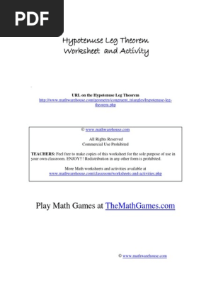 Some of the worksheets displayed are hypotenuse leg theorem work and activity, , the pythagorean theorem date period, pythagoras theorem teachers notes, pythagorean theorem 1, work altitude to the hypotenuse 2, state if the two triangles are if they are, leg1 leg hypotenuse.